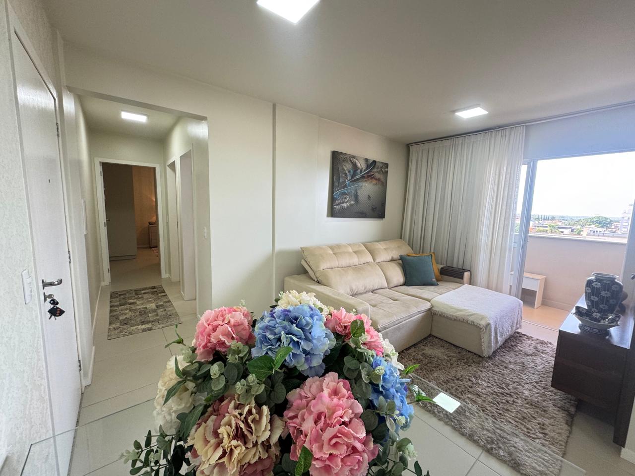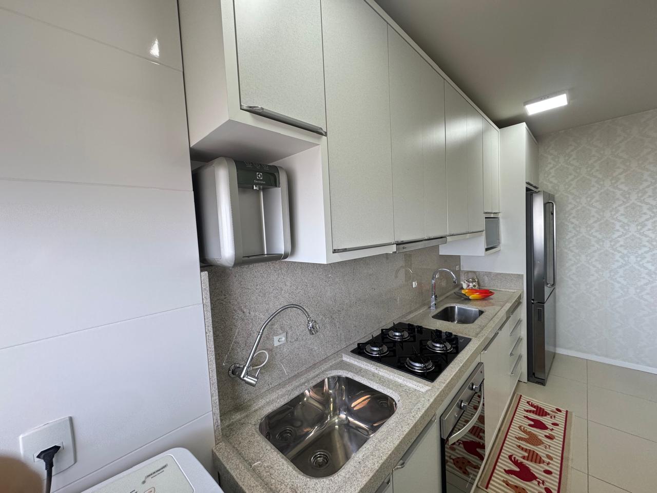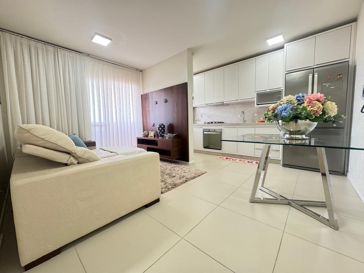 Lindo apartamento semi mobiliado, frente leste, 2 dormitórios, moveis sofisticados e bem cuidados, elevador, piso porcelanato, sacada com churrasqueira a carvão, salão de festas equipado, sistema de acesso monitorado, box de garagem coberto e fechado. Aceita financiamento bancário